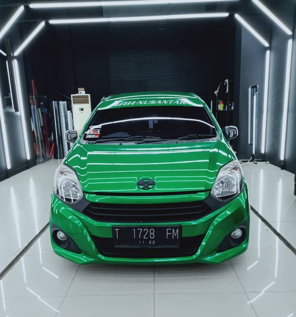 Akhirnya LCGC milik pemenang dibalut sticker Candy Glossy Emerald Green disertai tekstur glossy dan corak glitter dari produk MaxDecal. Stiker ini memembuat tampilan kelir mobil kelihatan seperti repaint. Namun sebelumnya, awak workshop Dice Sticker di bilangan Jalan Rawasari Selatan nomor 11C tersebut memperbaiki bagian bumpernya yang pecah. “Ketika sampai di sini, kita repair bagian bodi yang terdampak karena insiden itu. Lanjut, proses poles dan melepas part bodi untuk dilakukan proses wrapping,” urai Ricky.