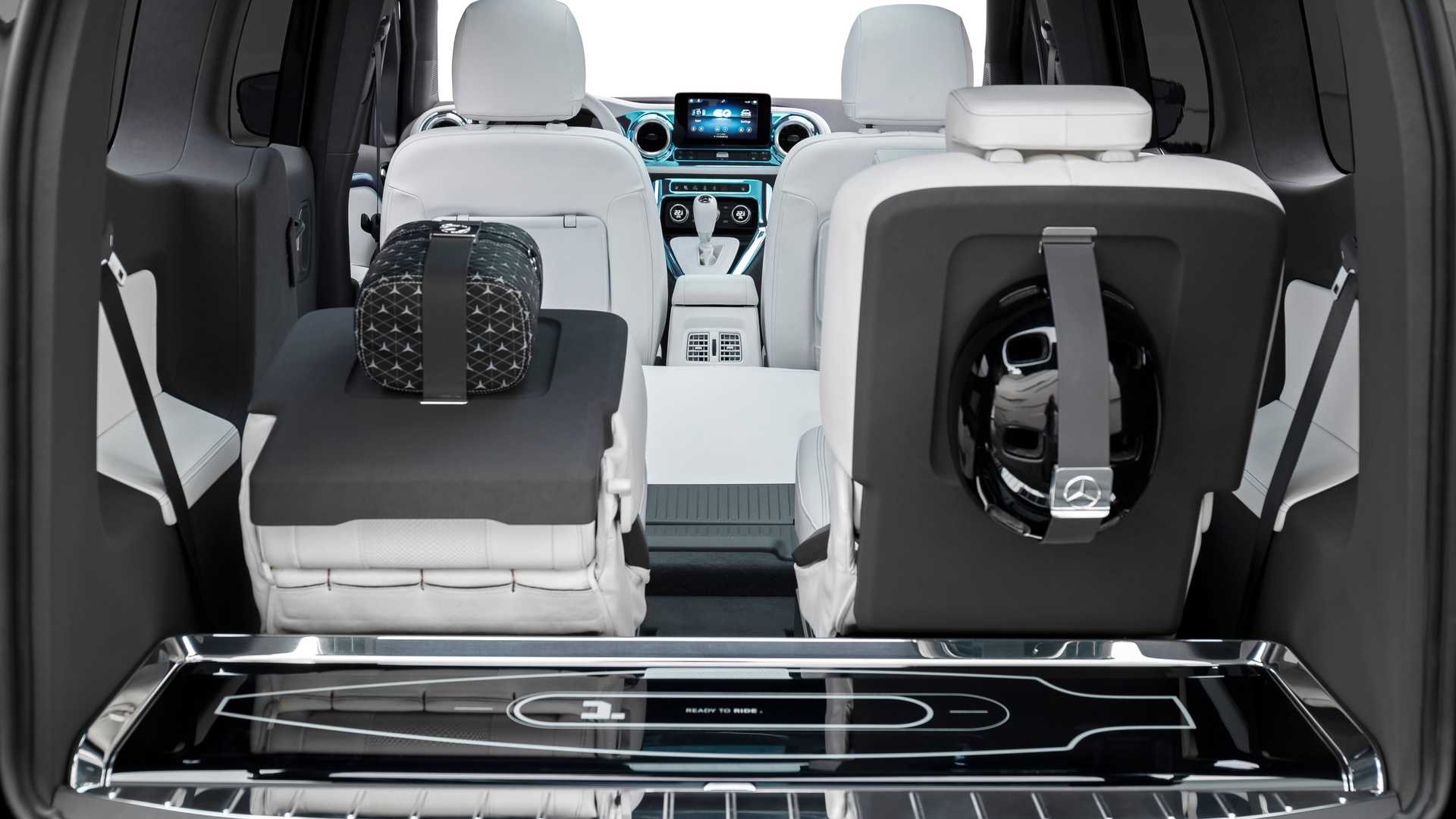 Mampu menampung hingga tujuh orang, Mercedes EQT memiliki panjang 4945 mm, lebar 1863 mm, dan tinggi 1826 mm. Kabin berbalut kulit dengan infotainment MBUX yang disematkan cukup besar untuk menampung longboard listrik di kompartemen kargo. Jika Anda membutuhkan lebih banyak ruang, kursi baris ketiga bisa dilipat atau bahkan dilepas.