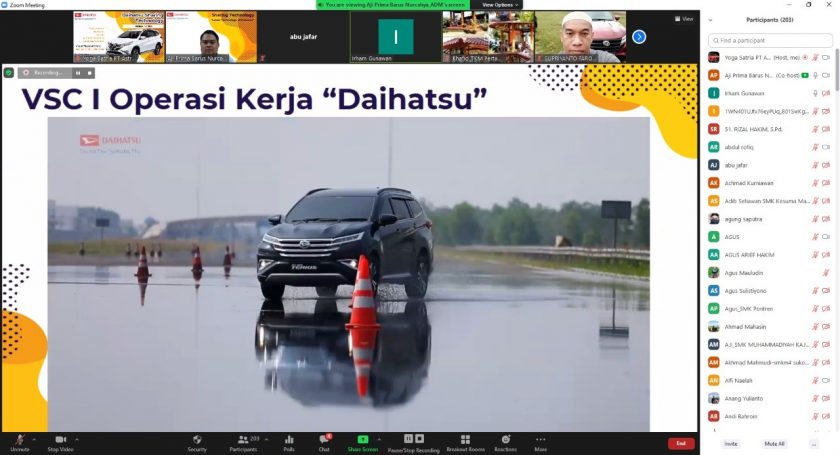 Dalam pelatihan virtual ini, Daihatsu berikan sharing seputar teknologi terbaru, mulai dari pengenalan fungsi, mekanisme kerja komponen, troubleshooting, serta pengenalan fasilitas produksi Daihatsu dalam membuat kendaraan yang rendah emisi dan ramah lingkungan.