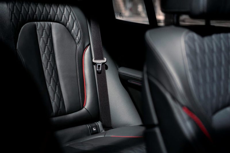 Begitupun sentuhan modifikasi area kabin yang dibuat senada dengan area eksterior. Penggunaan kulit hitam Merino, sisipan piping merah dan aksen jahitan kontras menambah kesan agresif yang dikonsepkan. Logo Black Vermillion juga dapat dilihat pada bagian tutup cupholder.