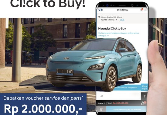 Program promo online ini berlaku untuk seluruh pemesanan melalui Click-to-Buy hingga 31 Juli 2021. Melalui program khusus platform penjualan online tersebut, setiap pelanggan berkesempatan mendapat voucher IDR 2,000,000,-. Voucher ini berguna untuk layanan pemeliharaan kendaraan rutin serta pembelian suku cadang dan aksesoris di seluruh dealer resmi Hyundai dan berlaku hingga 2 tahun.