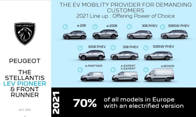 Pada 2023, 85 persen seluruh line-up Peugeot akan terelektrifikasi dan akan meraih angka 100 persen pada 2025 untuk wilayah Eropa. Era elektrifikasi Peugeot telah dimulai semenjak tiga tahun lalu dengan peluncuran Peugeot e-208.