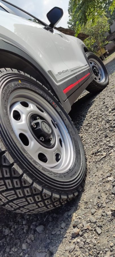Sektor kaki-kaki masih mengandalkan sokbreker standar yaitu McPherson Strut di bagian depan dan Coupled Torsion Beam Axle di belakang. Karena dianggap cukup, alhasil hanya mengganti velg kaleng berukuran ring 15×6,5 dengan et 45. Velg tersebut sudah menempuh proses kelir ulang dan penyesuaian centre hole. Sedangkan kemampuan gripnya didasarkan ban Accelera Rally berukuran 235/65.