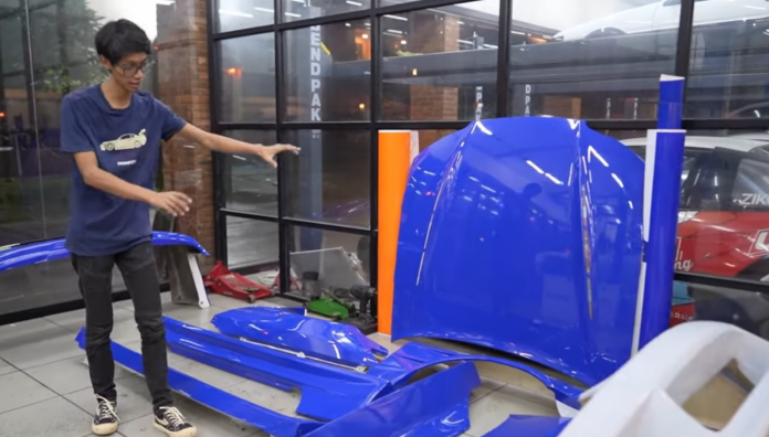 “Lihat nih, kalau aslinya dibuat lebih berkilau dan lebih halus dari warna metalik. Sekarang kita nunggu body kit sama spoiler supaya dapat meningkatkan kinerja aerodinamika mobil ini. Terakhir ornamen gambar bakal dibuat menggunakan decal sticker sudah cukup,” tuntas Ridwan.