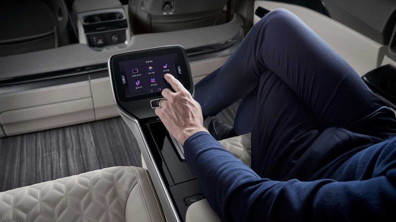 Tak hanya itu, layar tersebut juga memiliki tugas untuk mengatur lampu kabin (ambient), air-conditioning dan layar smart TV 21,5 inci. Sebagai pelengkap tampilannya, Kia juga menghadirkan tirai samping dan lampu LED ambient pada atap.