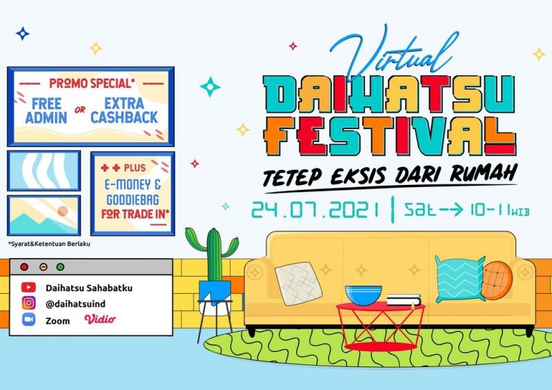 NMAA News – Daihatsu kembali sapa para Sahabat dengan beragam program penjualan dan hiburan menarik melalui acara bertajuk Virtual Daihatsu Festival pada akhir pekan ini, Sabtu, 24 Juli 2021, pukul 10.00 – 11.00 WIB. Daihatsu berkomitmen memberikan kemudahan pelanggan mewujudkan impiannya memiliki mobil baru dengan cara mudah, aman dan nyaman, sekaligus menyediakan hiburan menemani akhir pekan para Sahabat.