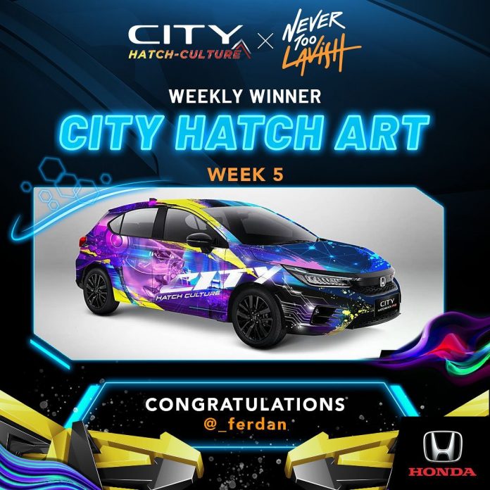 NMAA News – Pemenang Weekly Winner kompetisi Honda City Hatch Art minggu kelima satu ini punya cara tersendiri membangun tema City light and Vibrant. Kesan futuristis diwujudkan melalui harmonisasi dari warna ungu, biru dan kuning.