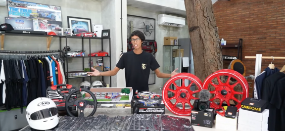 Selain itu, ada juga setir racing Sparco berbalut kulit asli, toolkit, helm Arai GP6S, Gokart listrik Ninebot, hingga satu set simulator balap dan PC.