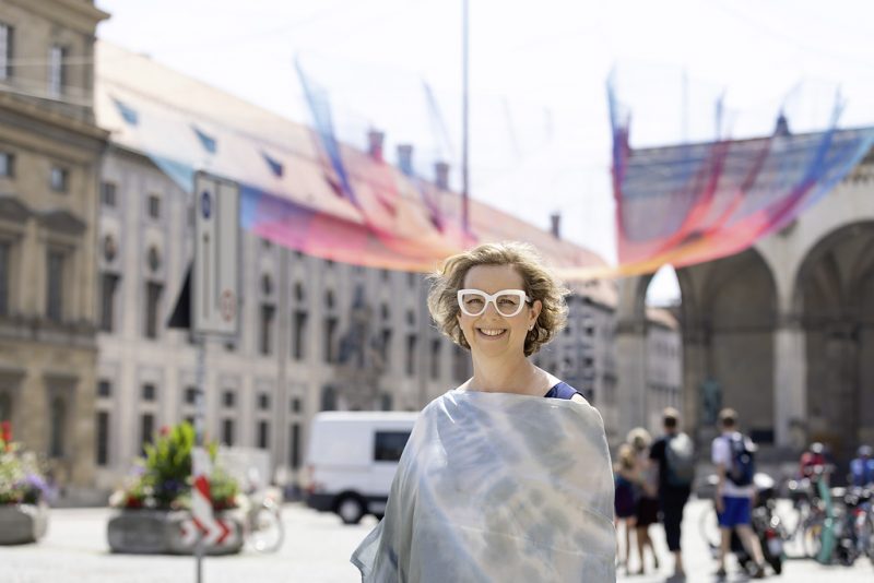 Seni pahat “Earthtime 1.26 Munich” akan memperkaya Odeonsplatz hingga awal Oktober. Seni pahat itu terletak tepat di seberang Studio Odeonsplatz oleh Mercedes-Benz, di mana model proses seni pahat lain oleh Janet Echelman dipajang.