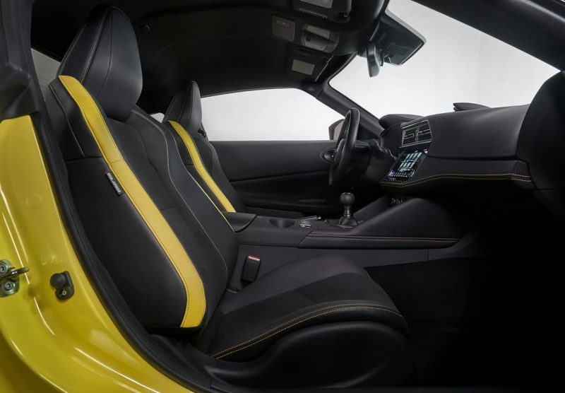 Memasuki ruang interior, spirit generasi Nissan Z begitu kentara dari perpaduan model dan warna. Seperti lingkar setir kemudi dilengkapi logo Z, panel instrumen digital berupa layar 12,3 inci, dan tiga instrumen lain di area dasbor untuk memberikan informasi. Seperti indikator tekanan boost, turbo hingga volt meter.