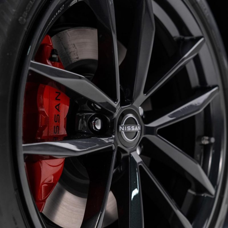 Nuansa sporty di eksterior dapat terlihat dari pemasangan handle pintu, lip spoiler belakang dan lampu belakang serupa model pendahulunya, Nissan 300ZX. Sedangkan di area kaki-kaki diberikan opsi velg 19 inci dilengkapi kaliper 4 pot di depan dan 2 pot di belakang.