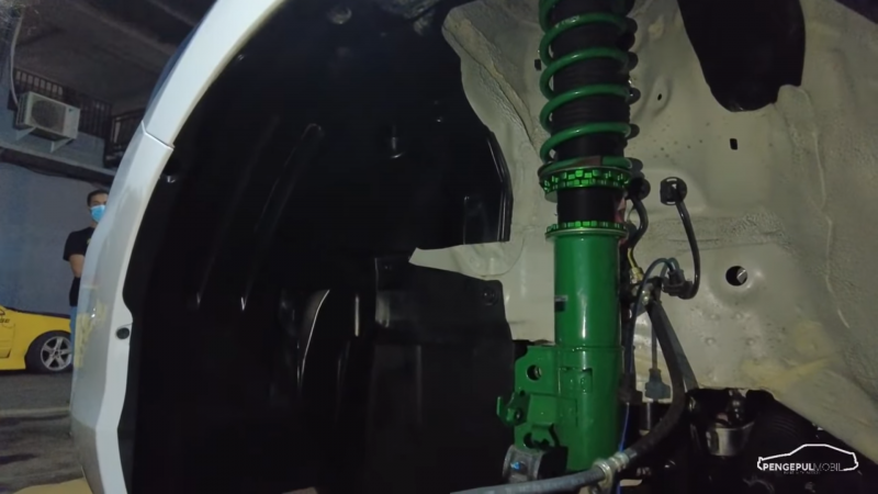Supaya semakin mantap bermanuver dan mengurangi travel pada suspensi, disematkan damper shock besutan Prime Active Stabillizator pada bagian per coilover.