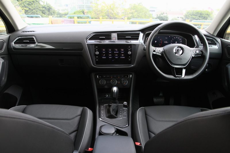 Pengendaraan Tiguan Allspace didukung fitur Adaptive Chassis Control (DCC) yang memberikan pilihan mode pengendaraan sesuai dengan kebutuhan pengemudi, dan menjadikan sistem peredaman suspensinya beradaptasi secara elektronik sesuai dengan pilihan pengendara.