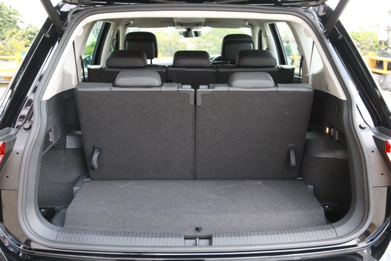 Seperti bangku baris keduanya, bangku baris ketiga juga menawarkan fleksibilitas pelipatan bangku dengan ruang kabin Tiguan Allspace begitu dinamis. Kapasitas bagasi saati seluruh bangku ditegakkan mencapai 230 liter. Saat bangku baris ketiga dilipat, kapasitasnya 700 liter.
