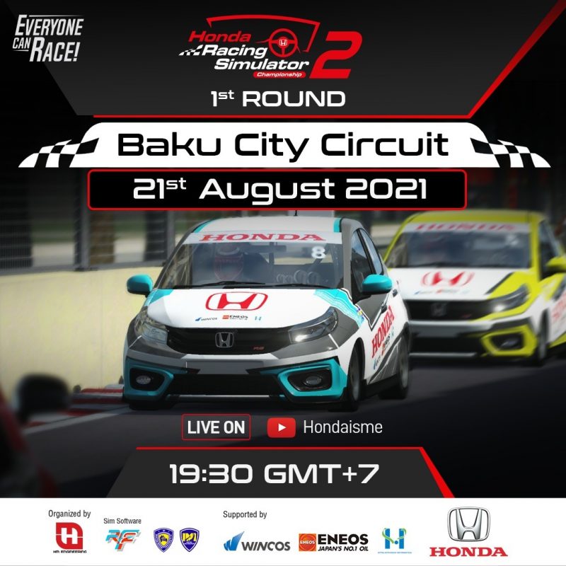 NMAA News – PT Honda Prospect Motor (HPM) yang bekerjasama HM Engineering dalam menggelar Honda Racing Simulator Championship (HRSC) musim kedua, akan segera memulai seri perdananya pada malam ini 21 Agustus 2021 pukul 19.30 WIB yang dapat disaksikan di akun Youtube @Hondaisme pada link https://youtu.be/6u9myV4FDhs. Pada seri perdana ini, peserta akan bertanding menggunakan sirkuit virtual Baku, Azerbaijan.