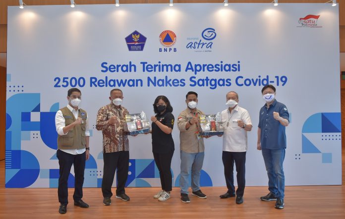 Turut ambil andil dalam kolaborasi ini, Asuransi Astra berikan apresiasi berupa perlindungan asuransi BPJSTK, asuransi kecelakaan diri Garda Me, dan healthy kit kepada 2.500 relawan tenaga kesehatan Covid-19. Serah terima apresiasi dilakukan secara simbolis di Graha BNPB, Selasa (7/9).