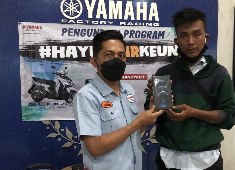 Dendi Achmad pemenang satu buah Iphone 12 Pro Max mengatakan, “Alhamdulillah tidak nyangka bisa dapet hadiah Iphone 12 Pro Max. Kaget banget, terima kasih Yamaha karena bisa dapat hadiah semewah ini. Saya membeli Yamaha Gear 125 langsung didealer Yamaha Mora yang berada di Tanjungsari Sumedang, saya pakai motor ini untuk aktivitas sehari-hari.”
