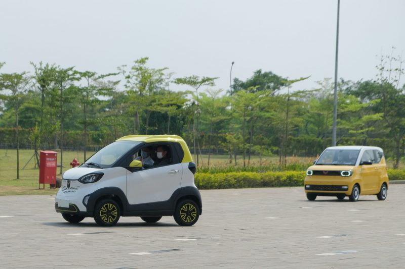 Usai pemaparan Mr. Shi Guoyong, Menko Marves dan Menkes berkesempatan mencoba pengalaman berkendara mobil listrik Wuling di area terbatas kantor pusat Wuling di Cikarang, Jawa Barat.
