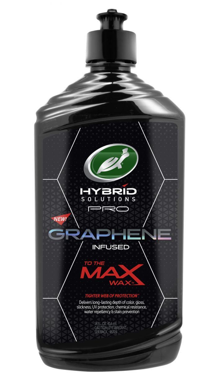 Hybrid Solutions Pro To The Max Wax mengandung formula Graphene yang sudah dipatenkan oleh Turtle Wax. Lapisan Graphene merupakan material yang sangat halus dan tipis namun kuat. Secara gram per gram, lebih kuat dibandingkan baja dan tentunya lebih ringan. Formula Graphene dikenal juga sebagai penghantar panas yang sangat baik untuk melindungi cat kendaraan dari panas sinar UV matahari. Kendaraan yang tidak terlindungi dari sinar UV dapat menyebabkan pudarnya dan kerusakan cat kendaraan.