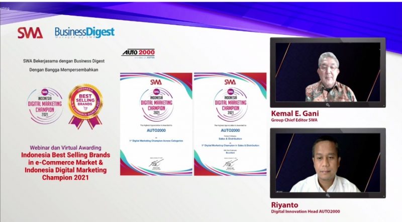 Tidak tanggung-tanggung, Auto2000 Digiroom meraih dua gelar sekaligus di kategori Sales & Distribution, dan juga meraih juara umum (Across Categori). Penghargaan ini diselenggarakan Majalah SWA dan Business Digest pada 12 Oktober 2021 secara daring dan diberikan langsung Kemal E. Gani, Group Chief Editor SWA.