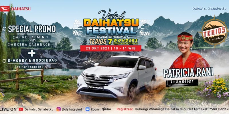 Selain program penjualan, Sahabat juga dapat menikmati beragam acara hiburan menarik dari Daihatsu di akhir pekan dengan edisi spesial bertema ‘Terios 7 Wonders – Petualangan Virtual’ melalui talkshow bersama Patricia Rani sebagai traveller atau sang petualang.