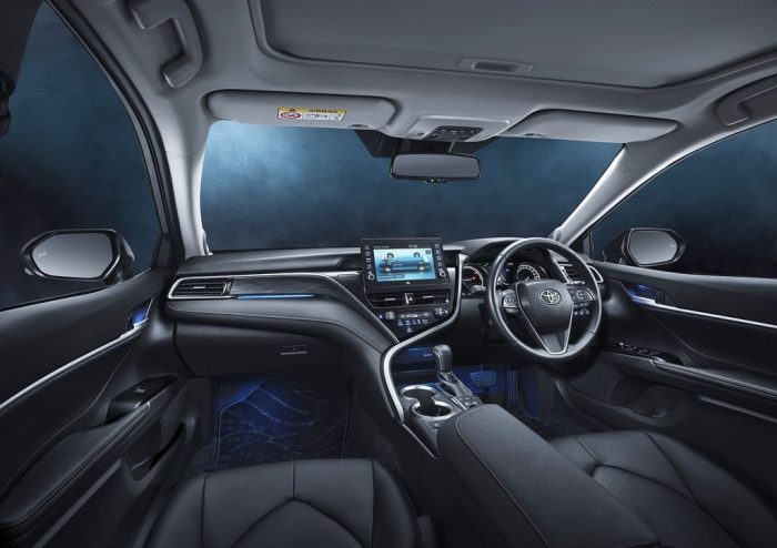 Sementara fitur baru pada New Camry Hybrid yang semakin advance dan berkelas dapat dilihat pada bagian interiornya. New Sophisticated Cabin Interior pada New Camry Hybrid menampilkan desain baru, khususnya pada area dasbor dengan adanya New Marvelous Floating Multimedia dan New Extravagant Ornamentation.