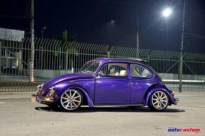 Berlanjut ke area eksterior, Eduardo ingin membuat tampilan semakin berbeda. Tubuh VW Beetle tersebut kian mendapat ubahan berkat pengaplikasian warna cat violet. Hasilnya, seluruh bagian bodi terlihat lebih berkilau.
