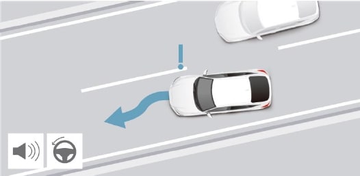Saat kendaraan berpindah jalur, sistem akan membantu menghindari tabrakan dengan kendaraan yang mendekat dari belakang. Ketika sistem mengenali risiko tabrakan dengan kendaraan yang mendekat dari sisi blind spot di belakang kendaraan, sistem akan memberikan peringatan audio dan peringatan visual pada cluster meter untuk memperingatkan pengemudi dan mengarahkan roda kemudi untuk menghindari tabrakan.