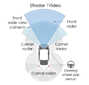Berbeda sistem sebelumnya, Honda SENSING 360 memiliki fitur jangkauan lebih luas tidak hanya di bagian depan dan belakang, tetapi secara omnidirectional atau 360o di sekitar kendaraan dengan tambahan total 5 unit radar di setiap sudut kendaraan.