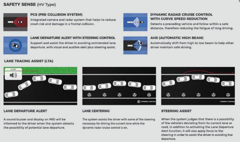 New Camry Hybrid juga disematkan teknologi safety Toyota canggih, Toyota Safety Sense 2 (TSS 2). Teknologi TSS 2 pada New Camry Hybrid menawarkan beragam fitur mulai Pre-Colission System (PCS), Dynamic Radar Cruise Control (DRCC) with Curve Speed Reduction, Lane Tracing Assist (LTA), hingga Automatic High Beam (AHB) yang semakin memberi kenyamanan dan keamanan ke pelanggan dalam bermobilitas.