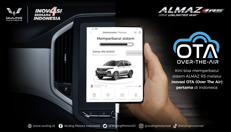 Mengenai OTA, layanan ini memungkinkan pengendara mengunduh pembaharuan sistem terkini secara wireless dengan dukungan SIM card network maupun akses internet lainnya. Pengemudi tidak perlu mengunduh pembaharuan sistem Almaz RS di dealer, namun dengan mudah diakses kapanpun dan dimanapun melalui aplikasi MyWuling+ yang dapat dioperasikan melalui smartphone.
