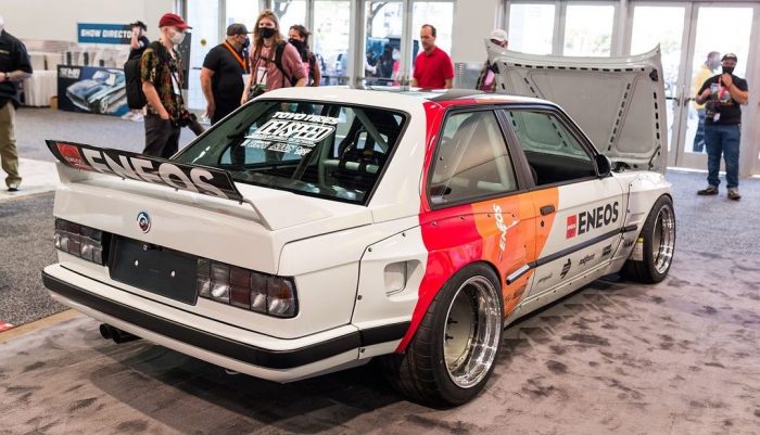 Unit berbasis BMW seri 3 E30 lansiran 1985 membuat sejumlah pengunjung SEMA 2021 keheranan usai mesin bawaan seri M digantikan mesin F20C dari Honda S2000 bertenaga 240 Hp.