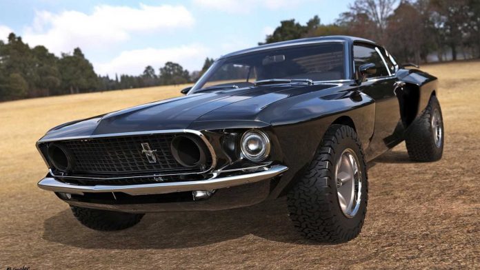 NMAA News – Rendering artist, Abimelec Design menyuguhkan karya render visual berbasis tampilan Ford Mustang 1969 bergaya ALTO (All Light Terrain Off-road).