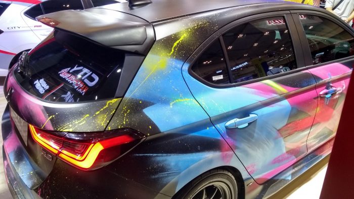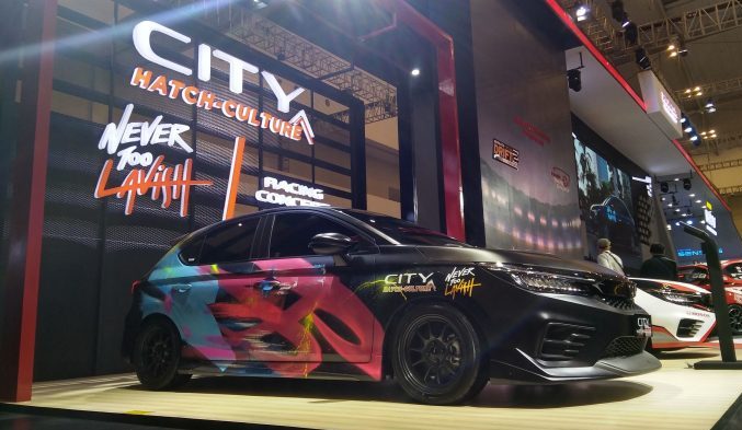 Selain memamerkan modifikasi Honda City Hatchback garapan Pengepul Mobil dan NeverTooLavish, booth Honda Indonesia di GIIAS juga menghadirkan modifikasi City Hatchback bergaya Racing Concept.