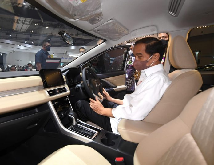 NMAA News – Presiden Republik Indonesia, Joko Widodo (Jokowi), didampingi Menteri Perindustrian Republik Indonesia (Menperin) Agus Gumiwang Kartasasmita, hari ini (17/11/2021) berkunjung ke pameran otomotif Gaikindo Indonesia International Auto Show (GIIAS) 2021. Dalam kunjungannya ke GIIAS, Presiden Jokowi, sempat menyambangi beberapa booth merek otomotif, termasuk Mitsubishi Motors.