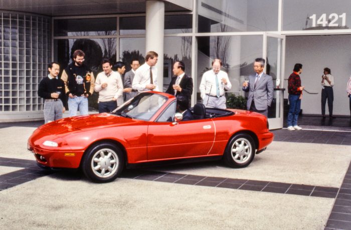 Seperti yang dilakukan banyak pabrikan, digelar kompetisi desain antar studio untuk mengembangkan desain Miata. Terpilihlah Tiga finalis berasal dari Tokyo, Hiroshima, dan Los Angeles. Tapi, salah satu peserta asal California Tsutomo “Tom” Matano dan Mark Jordan menghadirkan versi berbeda berwujud sedan convertible.