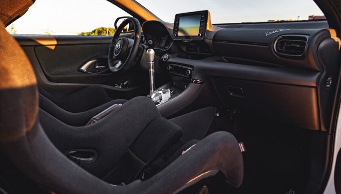 Memasuki ruang interior, sektor tampilan dan pengendalian roadster ganas tersebut dipertimbangkan untuk keperluan bersenang-senang di trek sirkuit atau dipakai harian. Terdapat bucketseet merek Bride Zieg IV, setir bergaya sport dari Nardi diameter 330 mm, dan gear knob Nismo.