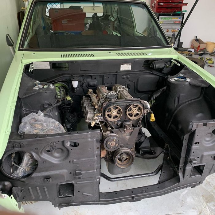 Kemudian imbuhan doping tenaga turbocharger Garrett GTX2860, dilengkapi intercooler Mishimoto dan intake Weldspeed. Menakar sistem bahan bakar lebih baik, mesinnya diberi suntikan ECU Haltech Elite 1500. Soal performa, mesin tersebut sanggup menghasilkan sekitar 250 – 300 HP.