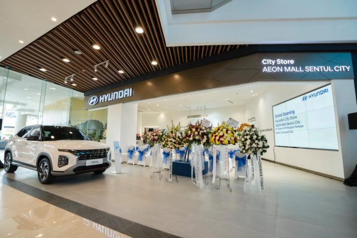 Hyundai juga memperluas kehadirannya bagi pelanggan di wilayah Bogor melalui Hyundai City Store AEON Mall Sentul City, Lantai Dasar, Unit 56. Hyundai City Store yang dikelola PT Sinar Inti Primajaya Perkasa ini dilengkapi coffee shop untuk memberi pengalaman lebih ke pelanggan saat mengunjungi showroom, serta 2 fasilitas pengisian mobil listrik.