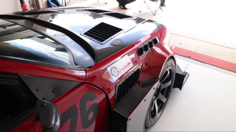 Kita masih bisa melihat beberapa body kit lainya seperti bumper baru di bagian depan, kap mesin lengkap dengan tiga buah hood scoops, serta grill yang sudah ditanggalkan.
