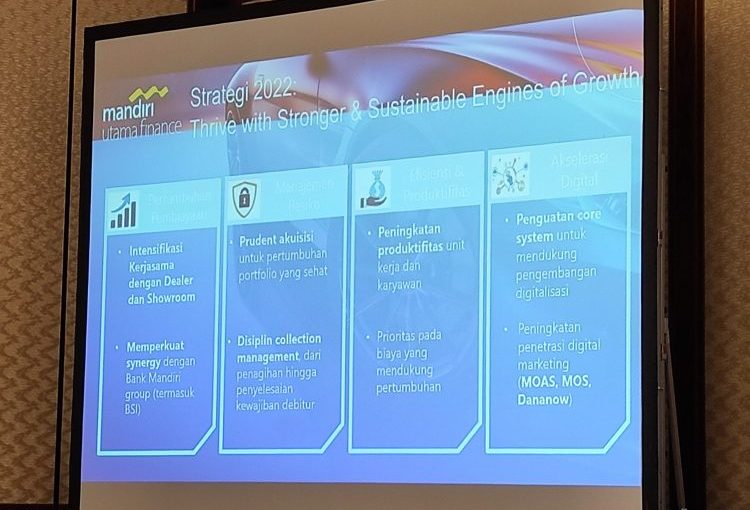 Di samping itu, Direktur Keuangan dan Hubungan Bisnis Rully Setiawan menerangkan, sejumlah strategi lainnya disiapkan untuk tahun buku 2022. Perusahaan masih akan memanfaatkan captive market Bank Mandiri dan penetrasi lebih pada pasar syariah bersama BSI.