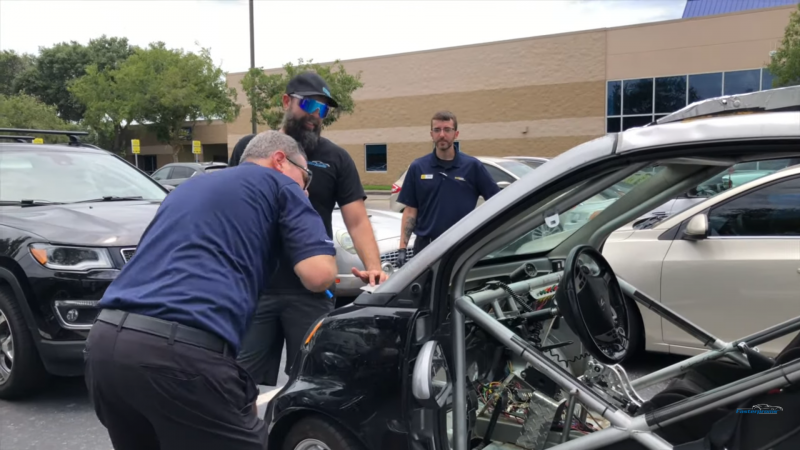 Dalam unggahan video pertama, semua tampak berjalan baik. Mulanya menunjukan cuplikan mobil saat digeber di jalanan. Dengan tampilan tanpa pintu, mobil tersebut terlihat seperti ‘sangkar burung’ raksasa.