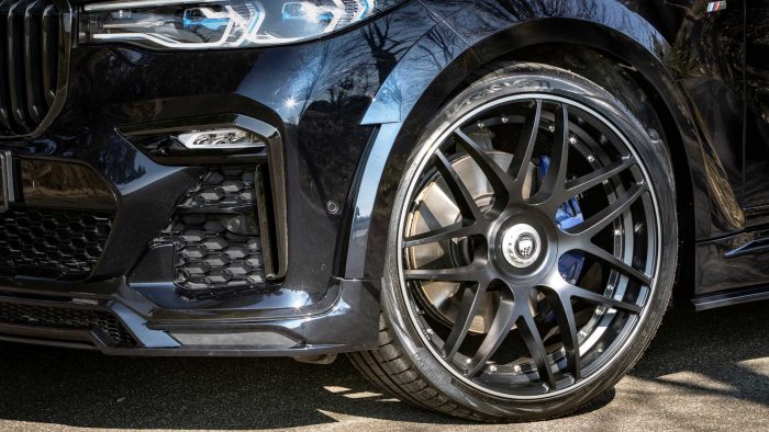 Perombakan simpel bermula dari menambah kekar tubuhnya dengan mencangkok wide body kit. Menariknya, Lumma Design membuat desain overfender hampir terlihat natural. Alhasil, BMW X7 tampak lebih gambot sekitar 50 mm dari versi aslinya. Bagian kanan-kiri bodi juga disematkan side skirt bermodel sporty.⠀