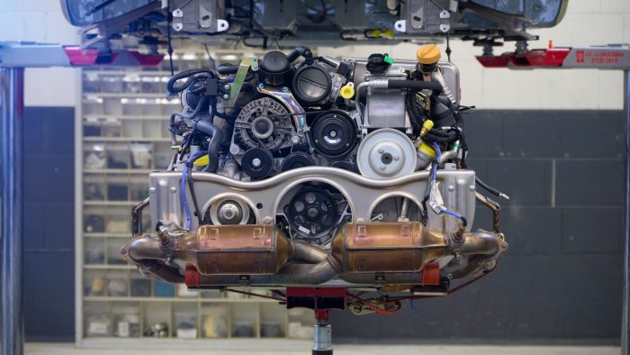 Dapur pacu tersebut duduk sempurna di dalam ruang mesin Porsche 911 996 lansiran 1998 untuk memulai pengerjaan di bengkel Porsche Classic, Stuttgart-Zuffenhausen, Jerman.