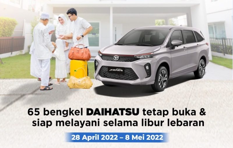 Tersebar di seluruh Indonesia, 65 Bengkel Siaga Daihatsu siap melayani pelanggan selama periode Lebaran mulai 28 April – 8 Mei 2022, yang buka setiap hari dengan jam operasional 08:00-16:00, termasuk hari libur Sabtu, dan Minggu.