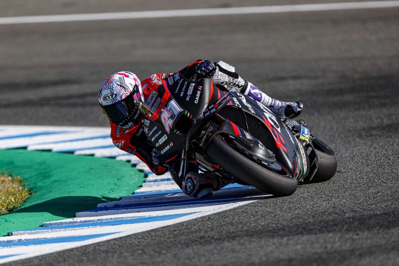 “Kami melanjutkan program pengujian yang kami sepakati dengan Aprilia dan sensasi keseluruhan lebih baik daripada di Portimo. Namun, tes jelas dikondisikan untuk pencarian performa terbaik, terutama dengan ban baru, karena kami sebenarnya tidak memiliki pengaturan dasar yang tepat. Sebagai pengendara, naluri saya adalah untuk mendorong kecepatan, tetapi kami di sini untuk melakukan pekerjaan yang berbeda dan hal tersebut merupakan pekerjaan yang menarik.