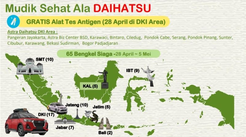 Berbeda dari tahun-tahun sebelumnya, Program Mudik Sehat ala Daihatsu ini, pelanggan bisa mendapatkan alat tes Antigen secara gratis pada 28 April 2022 di 17 bengkel resmi Daihatsu di Jakarta dan sekitarnya.