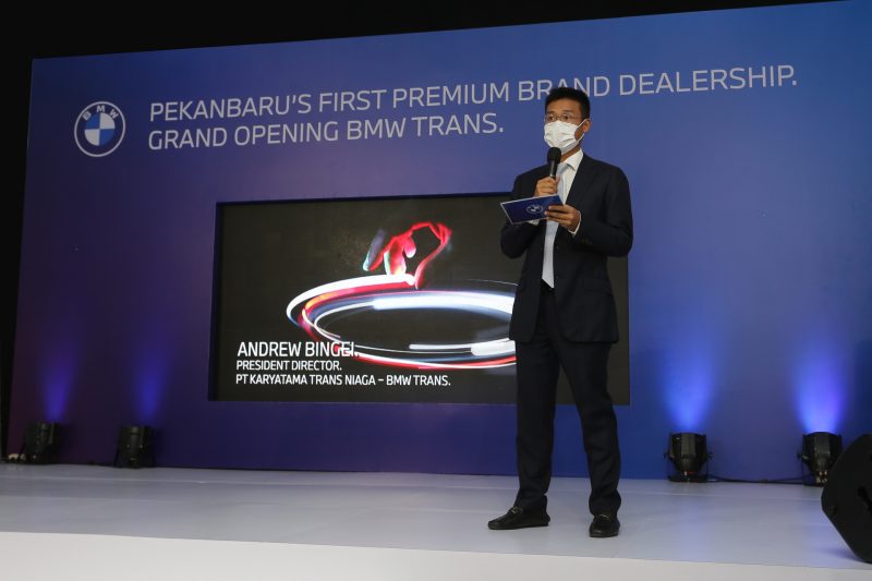 Dengan semangat, Andrew Bingei, President Director PT Karyatama Trans Niaga, berujar “Kami merasa terhormat oleh kepercayaan yang diberikan BMW Group Indonesia dengan peresmian BMW Trans sebagai diler premium terlengkap pertama di Pekanbaru. Kami senang dengan penggunaan teknologi BMW Emotional Virtual Experience (EVE) sebagai bagian proses pengambilan keputusan konsumen.”