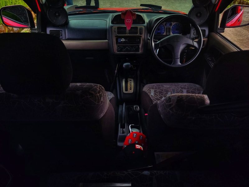 “Supaya terlihat sangar, dua buah lampu depan dibuat black housing dari awalnya krom. Sedangkan di belakang, dihadirkan dari lampu mundur Cibie, towing bar, dan tutup ban milik Pajero lokal,” urainya.