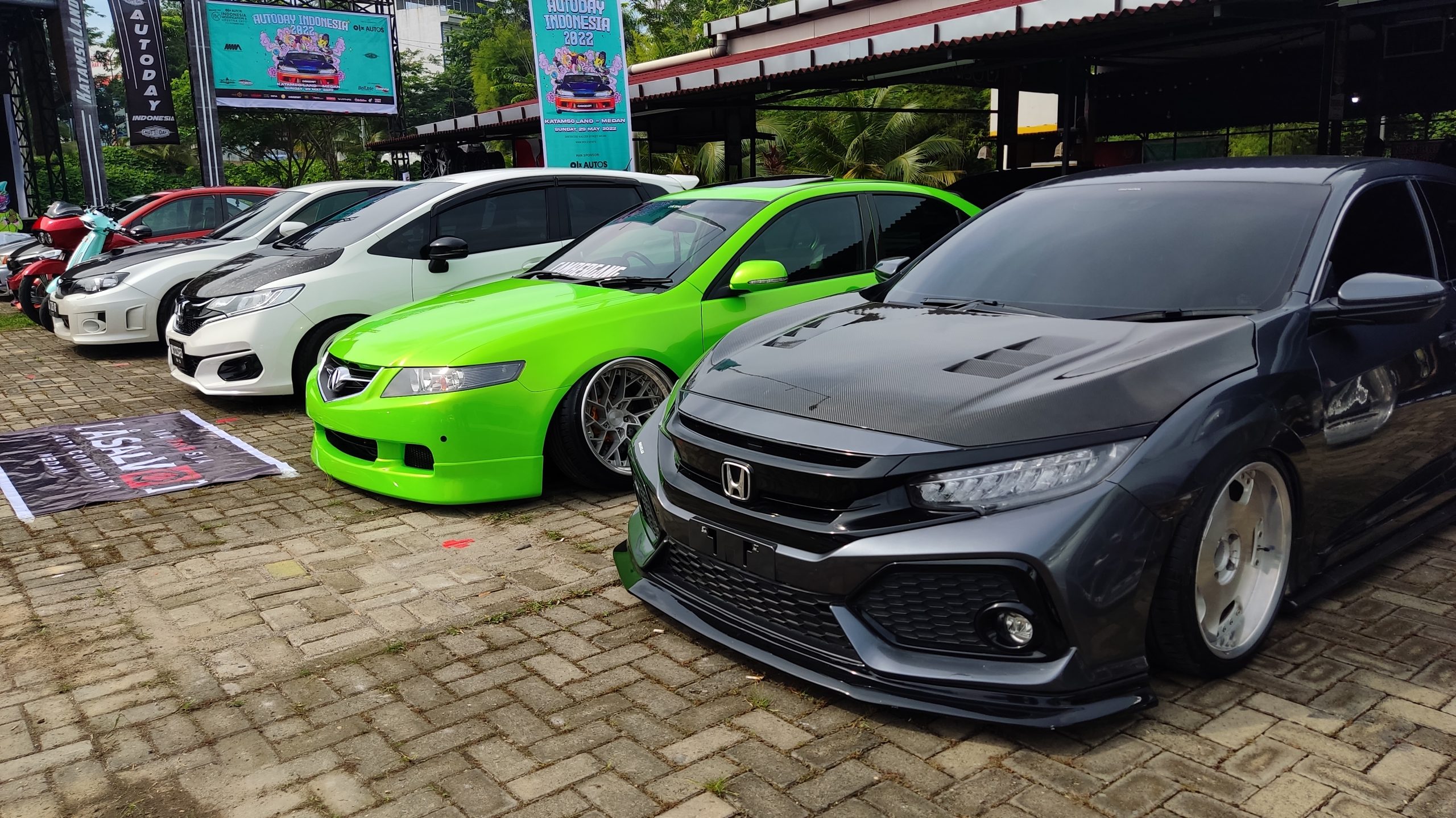 Memasuki pukul 10.00 WIB, lokasi yang dibagi menjadi beberapa area sudah dipadati para pengunjung. Misalnya area luar yang mengumpulkan deretan mobil modifikasi, komunitas mobil dari Indonesia Community, hingga memasuki pelataran dalam Katamso Land, Medan.